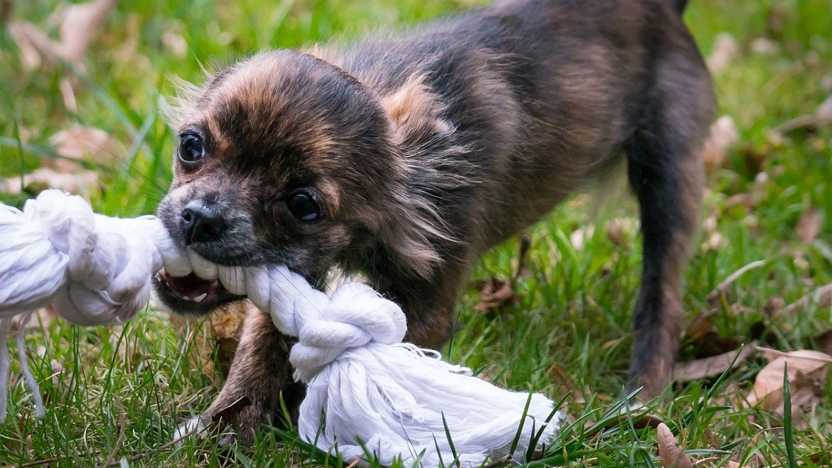 Natural fabrics such as cotton and wool make for the best tug toys. However, fleece is also a soft and safe option. Avoid fabrics that easily shred into fine threads; they can be dangerous if swallowed. If you use denim, keep any loose threads trimmed as the toy ages to prevent the dog from swallowing long strings, which can be harmful to your dog’s gut.