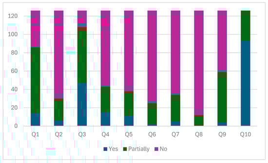 The worst evaluated items were Q8, Q6, Q2, and Q7. The principals are not involved in the development of advisory actions on issues of digital technology management for the school’s teachers (Q8). They do not actively participate in professional activities with teachers, planning, modeling, and inquiring about leadership practices (Q6). They do not establish with the teaching staff teaching strategies that should be promoted in the school to develop cognitive, linguistic, socio-emotional, and motor skills in students (Q2), and do not promote the updating, training, and formation of teachers according to their professional and institutional needs (Q7).