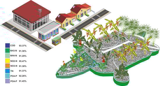 4-N removal can be attributed to the synergistic interactions between the plants and microorganisms within the system, which are favored by local tropical climatic conditions that support more vigorous vegetative growth and increased microbial activity.