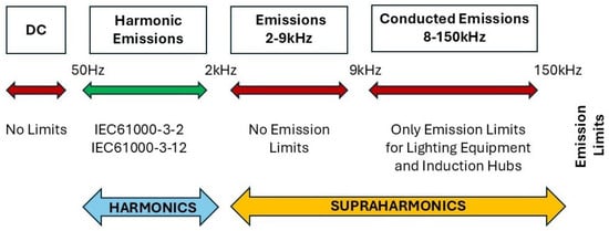 Previously, the conversion of direct current (DC) to alternating current (AC) and vice versa was predominantly carried out using passive power electronics, with converters utilizing diodes or thyristors. This approach resulted in significant harmonic emissions in the frequency range up to 2 kHz. However, technological advancements have introduced materials such as silicon carbide (SiC) and gallium nitride (GaN) in power electronics switches, such as IGBT and MOSFET, allowing for a substantial increase in conversion efficiency. Although these technologies lead to lower harmonic distortion at frequencies up to 2 kHz, greater distortions are observed at higher frequencies (>2 kHz) due to the high switching frequencies involved [