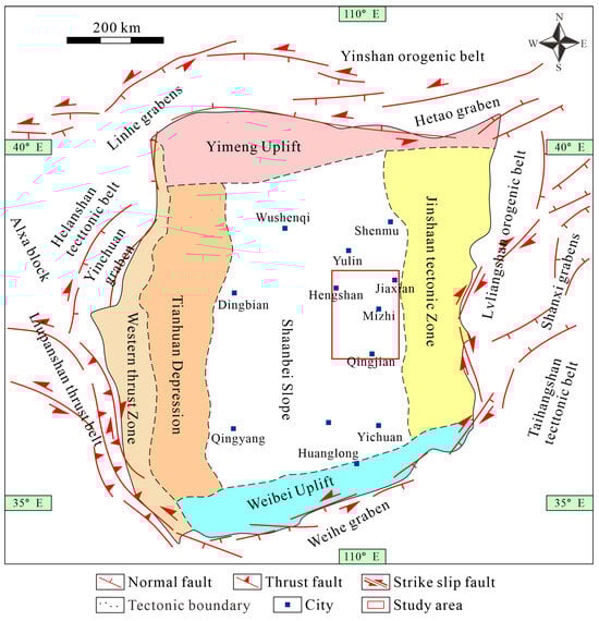 The division of tectonic units and the location of the research area in the Ordos Basin.
