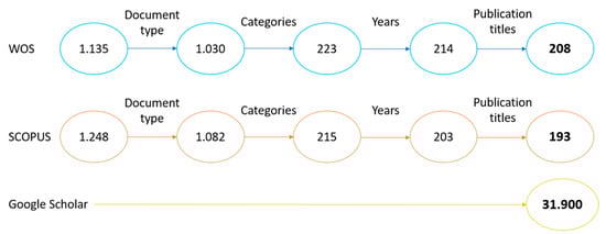 Only peer-reviewed scientific articles related to specific thematic areas within the thematic scope (e.g., tourism, psychology, risk) were considered, and only studies published between 1995 and 2022 were selected, ensuring a robust longitudinal analysis of trends. Additionally, a thorough review of titles was carried out to ensure that the selected articles were closely related to the topic of study.