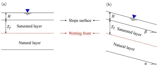 qcosβ) at the critical time. At this time, the depth of the wetting front can be calculated by combing Equations (6) and (7), which is expressed as follows: