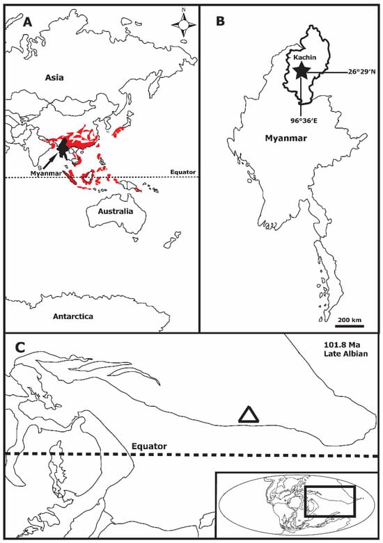 Type locality: Amber mines near Tanai, Ledo Road, 105 km northwest of Myitkyina, Kachin State, Myanmar (26°20′N, 96°36′E). This site is within the Hukawng Basin, which is composed of folded sedimentary (volcanic) rocks of the Cretaceous and Cenozoic Ages.