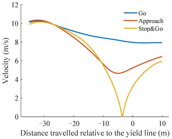where , , and are undetermined coefficients; represents the relative position of the ego vehicle and the yield line; and , , represent the relative position of the three driving behavior decision points and yield line, respectively.