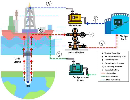 u), where effective control measures optimally regulate the pressure at the drill bit. Finally, the fluid returns to the initial sludge tank (