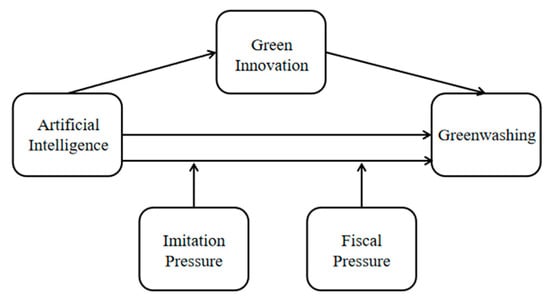 This paper is based on a sample of publicly listed companies in China, covering the period from 2012 to 2022. It develops an AI index using text analysis and word frequency statistics to empirically assess the influence of AI on corporate greenwashing. A series of robustness tests and endogeneity treatments are conducted to ensure the reliability of the findings presented in this paper. Moreover, this research investigates the transmission mechanism of AI in reducing corporate greenwashing by introducing green innovation as a mediating variable, examines the potential mediating effects between AI and corporate greenwashing, and proposes new strategies for curtailing such behaviors. Additionally, from the perspective of external legitimacy pressures, the moderating roles of imitation pressure and fiscal pressure on this relationship are empirically examined. This research mainly focuses on the following contributions: Firstly, while existing research predominantly focuses on artificial intelligence (AI)’s impacts on corporate innovation, performance, labor substitution rates, and digital transformation, this study reveals AI’s significant inhibitory effect on corporate greenwashing from a corporate social responsibility (CSR) perspective. This finding extends the research boundaries of AI applications in sustainable development. Secondly, by integrating green innovation into the analytical framework of AI-greenwashing relationships, this study clarifies the mechanistic pathway through which AI reduces greenwashing behaviors by fostering green innovation initiatives. This breakthrough elucidates the underlying causal mechanisms between technological advancement and ethical corporate practices, offering substantial practical implications. Thirdly, on the basis of analyzing the influencing mechanism of artificial intelligence on enterprise greenwashing, this paper further discusses the regulatory role of imitation pressure and financial pressure. From the perspective of external legitimacy pressure, it enriches the theoretical connotation of artificial intelligence in promoting corporate social responsibility and provides empirical support for promoting the high-quality development of enterprises.