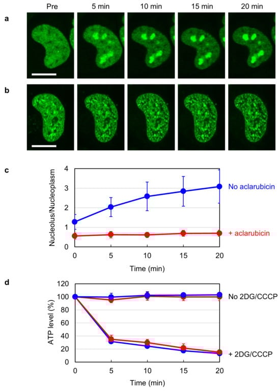 Cells were plated in a 96-well plate (5 × 103 cells/well). After 24 h of incubation at 37 °C, cells were pretreated with or without 1 µM aclarubicin for 1 h. Cells were subsequently treated with 25 mM 2DG and 10 µM CCCP for periods indicated in Figure 1d. Cell lysis and ATP measurement were performed using a CellTiter-Glo luminescent cell viability assay kit (Promega, Madison, WI, USA) according to the manufacturer’s instructions. Luminescence was measured using a 2030 ARVO X multilabel reader (Perkin Elmer, Shelton, CT, USA).