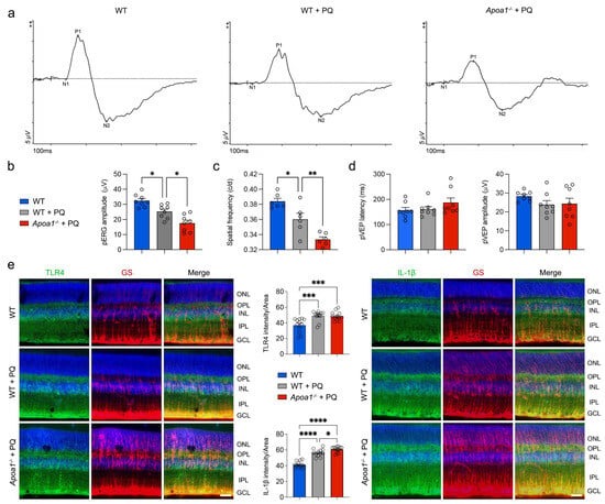 n = 6 to 8 mice per group) such as pattern electroretinogram (pERG), pattern visual evoked potential (pVEP), and virtual optomotor response were assessed 1 week after PQ treatment.