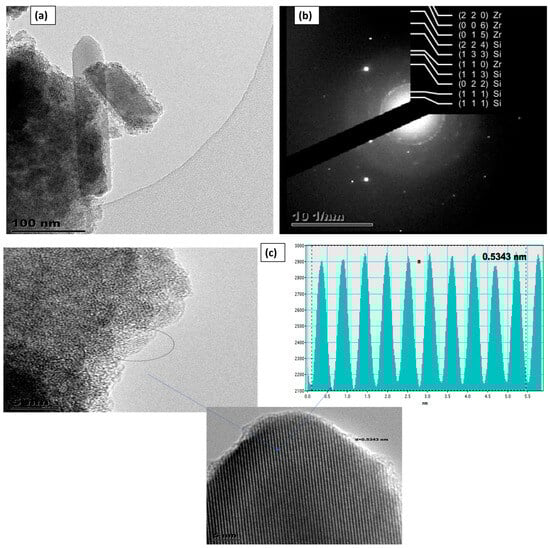 Zirconia is a special high-temperature solid electrolyte because it forms structural defects with oxygen ion vacancies upon doping with specific aliovalent oxides. This significantly increases oxygen ion conductivity [11]. Moreover, zirconia can provide good ionic conductivity and thermochemical stability when doped with different transition metal cations [15] and has shown the possibility of electrochemical measurement using solid-state galvanic cells based on zirconium solid electrolytes [16]. However, ZrO2 has limited applications in industry due to its low acidity, basicity, and porosity, as well as its low BET surface area of 50 m2/g compared to other oxide materials such as SiO2, Al2O3, and TiO2 [17]. Mesoporous silica has a high surface area and well-defined pore structure, ensuring sufficient active sites for catalytic reactions, adsorption processes, and drug delivery applications [18]. The combination of mesoporous silicon and zirconium oxide nanoparticles can achieve an optimal balance between surface area, conductivity, stability, pore size distribution, and mechanical stability, making it very useful for various applications such as electrical equipment, sensors, catalyst supports, and solar cells [7]. The zirconium oxide phase is shown to be more stable when combined with silicon dioxide (SiO2) due to the creation of Si-O-Zr bonds [19]. Furthermore, the benefits of ZrO2/SiO2 binary oxide include the synthesis of Si-OH (silanol) and Zr-OH groups, which operate as sites for increasing the formation tendency of an apatite layer. Silanol groups can connect to biomolecules, resulting in a multifunctional coating for drug delivery, cell targeting, bioimaging, and biosensing [19].