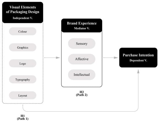 The indirect effect through BE demonstrated an estimated value of 0.048, with a 95 percent confidence interval of [0.005, 0.116]. The exclusion of zero from this interval establishes the significance of the indirect effect, confirming BE as a significant mediator in the relationship between layout elements and PI. The total effect of layout elements on PI showed an estimated value of −0.153, with a 95 percent confidence interval of [−0.269, −0.039]. The exclusion of zero from this interval confirms a significant overall effect. The significant R value indicates that the indirect benefit represents a substantial proportion of the total effect. Given the significance of both direct and indirect effects, the results demonstrate partial mediation, with layout elements influencing PI through both pathways. These findings support H2e, and the final model of packaging design layout elements at different levels is illustrated in