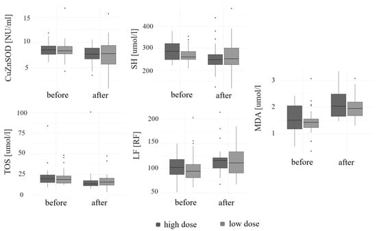 p = 0.1) was found. However, it was not statistically significant. The concentrations of selected OS parameters at the beginning and the end of the study are given in