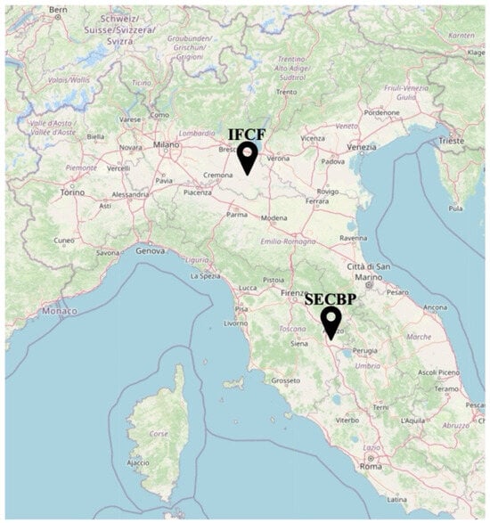 Effluent management contributed 11.9% of the total CF for SECBP and 7.3% for IFCF. The values were quite similar, with IFCF being slightly more efficient, likely due to the manure management systems present in the barn that allow for effective management and reduced exposure times to the air. The slurry is used in biogas production for energy generation, and the digestate is buried in the farm’s land. In the SECBP system, the manure is naturally spread on the fields, so it is not managed through systems and cannot be buried quickly, but only when the soil preparation for planting a new forage crop is done.