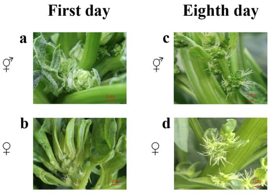 7]. Spinach exhibits three types of sex expression: male, female, and monoecious. Spinach flowers are unisexual. Most spinach varieties are dioecious, with distinct male and female plants typically showing a 1:1 segregation ratio. In spinach, sex determination is controlled by sex-determining genes on sex chromosomes. Previous studies have shown that