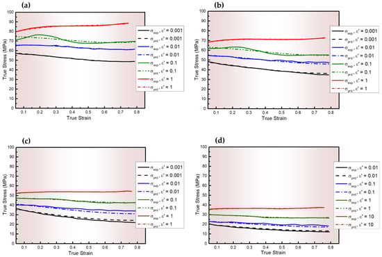 For obtaining the S1-MJC model’s constants, and are set as 400 °C and 0.001 s−1. Therefore, Equation (29) simplifies to the following: