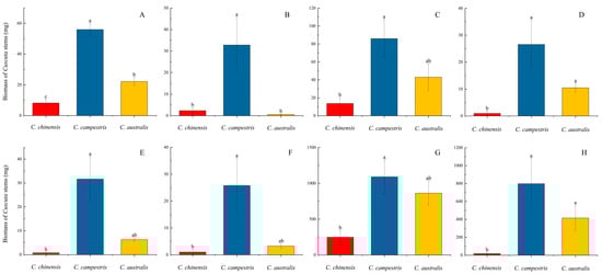 Figure 3G,H), yet the biomass of the parasitic plants was the opposite (