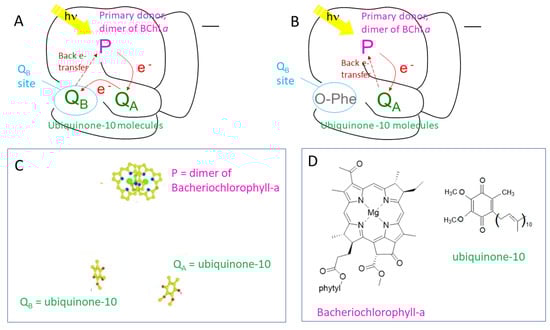 a molecules (called P), located nearby the periplasmic side of the RC, is excited to P* and is then photo-oxidized, giving an electron, through an intermediate bacteriopheophytin pigment, to a ubiquinone named Q