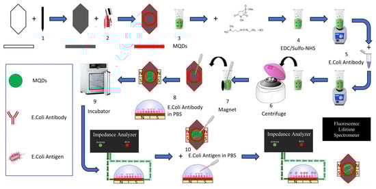 Figure 1. Step 9). After the drying process, the sensors are ready for analysis with impedance and quantum efficiency.