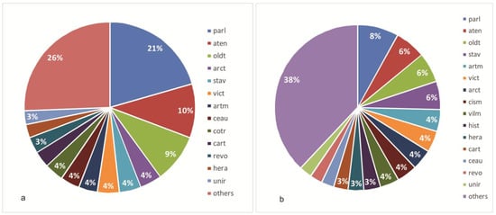64]. To facilitate data mining for further statistics and visualization techniques, the obtained raw data were cleaned and encoded by coding labels that allowed for the transformation of different mentions of monuments and landmarks in Bucharest using shorter uniform labels. Data cleaning and curation were performed in Excel using specific commands and functions to reduce as much as possible the bias resulting from their manual introduction, which could not have been performed otherwise, and further ensured easy software analysis. The comparatively small amount of data allowed for thorough, rigorous verifications that eliminated errors resulting from initial manual encoding and software commands.