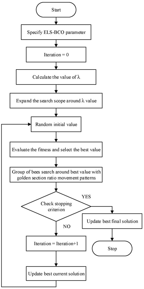 In ELS-BCO, methods from the lambda iteration and golden section ratio techniques are combined to form a novel search strategy. Based on the concept of equal cost lambda (λ), this approach provides an initial estimate, defines the boundary limits around λ values, and improves bee movement using the golden section method, which is a local search strategy. The objective is to attain equilibrium between exploration and the identification of food venues. Each step in this process is performed according to the BCO method. The following sections will detail the ELS-BCO approaches to solving the ED problem.