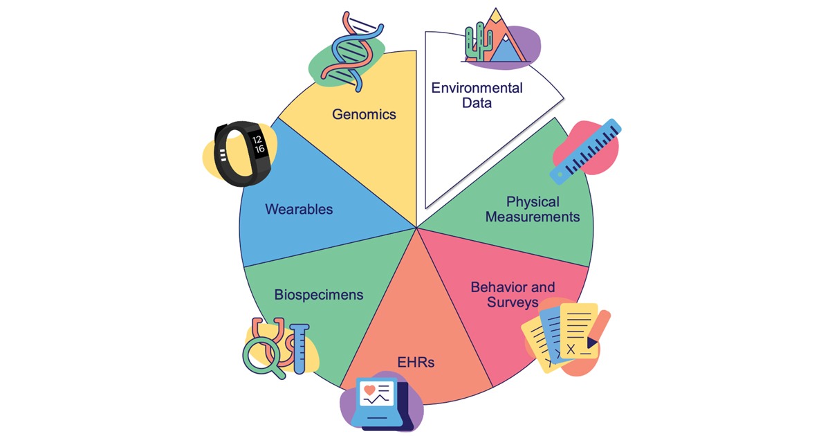 All of Us is exploring various opportunities to add exposure measurements alongside other data from individuals who volunteered to participate in the program. Over time, the research program aims to engage a diverse group of at least one million participants across the United States. Thanks to the information that participants share, researchers may be able to find ways to treat and prevent disease by learning how a person’s biology, lifestyle, and environment affect health.
