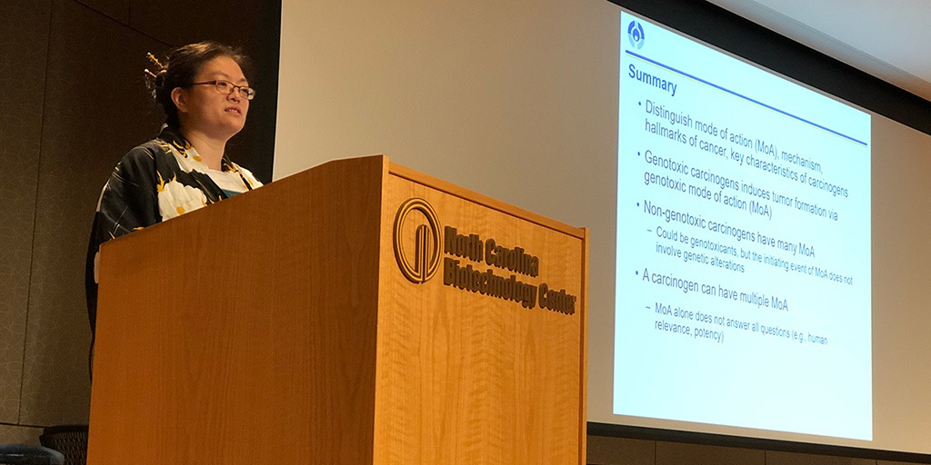 Amy Wang, Ph.D., a health scientist in the NTP Office of the Report on Carcinogens, reviewed genotoxic and nongenotoxic origins of cancer. She then described the key characteristics of carcinogens (see sidebar).