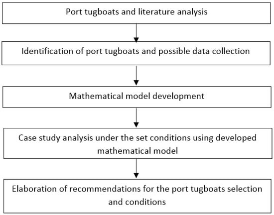 The methodology consists of data from the literature and results obtained by monitoring the movement of ships in the port of Klaipeda and other ports, supported by theoretical and experimental research. This methodology takes into account the manoeuvrability of commercial ships and tugboats in various weather conditions; these conditions include wind speed, wind heading angle, current speed, current heading angle, etc. The study required additional data, such as the width of navigation channels (waterways), channel depths, tug equipment parameters during operation and the corresponding coefficients obtained from theoretical and experimental studies for the calibration of the full mission visual simulator (which was later used for further studies).