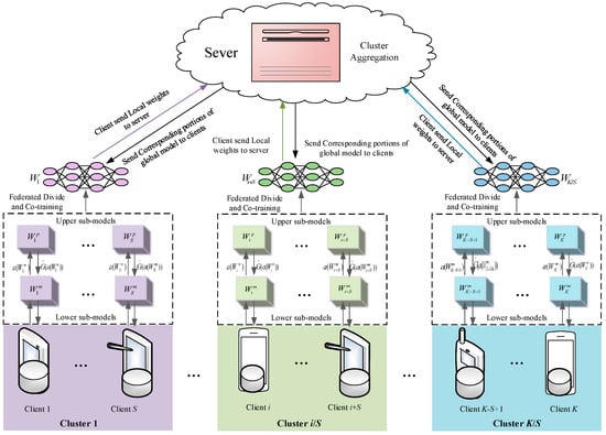 11] divided the large-scale deep learning model into a set of several small sub-models, trained them in parallel on multiple devices, and designed a framework that allowed multiple client clusters to cooperate. This allowed clients within the same cluster to learn from each other, improving the overall model performance. However, during the training process, all devices in the cluster interact with a large number of model parameters, resulting in high communication costs. The direct way to reduce communication costs is by compressing the data exchanged within the FL framework through compression processing. The sparse gradient strategy reduces the amount of data transmitted during each communication without significantly reducing the accuracy [