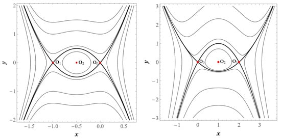 Figure 1) are qualitatively equivalent because the two saddle points have a common separatrix (or saddle connection), and between them, a center point exists.