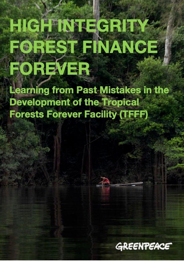 Read Greenpeace International’s position paper: High Integrity Forest Finance: Learning from Past Mistakes in the Development of the Tropical Forests Forever Facility.