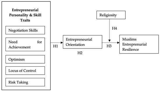 Some previous literature identifies the relationship between entrepreneurial traits and entrepreneurial resilience. Still, few have discussed the mediating role of entrepreneurial orientation, and none have focused on Muslim entrepreneurs’ resilience. There needs to be more literature on this subject applied to SMEs. The research’s key contribution is to measure the impact of entrepreneurial traits on entrepreneurial resilience by placing entrepreneurial orientation as a mediator. As per the prior research, several dimensions of entrepreneurial traits have been proven to significantly and positively affect entrepreneurial resilience.