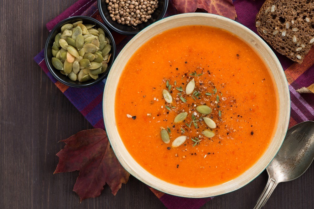 Orange certainly is the new black! Great vegan soups include pumpkin bisque, butternut squash, acorn squash, or creamy carrot. Try one of these Thanksgiving-worthy vegan soup recipes: