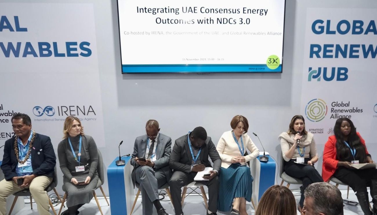 At COP29 in Baku, IRENA, the United Arab Emirates and the Global Renewables Alliance (GRA) co-hosted a side-event at the Global Renewables Hub to discuss challenges and opportunities of “Integrating UAE Consensus Energy Outcomes with NDCs 3.0”.