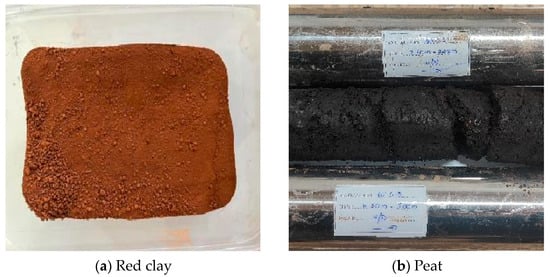 The composition of natural soils is complex and variable, with significant randomness and variability in mineral and organic matter content, making it quite challenging to study the effects of organic matter in isolation. To address this issue, this study prepared soil samples using an artificial mixing method. Red clay was used as the matrix, and natural peat was added to effectively control the organic matter content in the samples. The red clay was obtained from the Chenggong campus of Kunming University of Science and Technology. The peat samples were collected from a wetland park on the northern shore of Dianchi Lake in Kunming, Yunnan Province, at a depth of approximately 0.3 m. This peat has a high degree of decomposition, with a residual fiber content of about 4.5% and organic matter content exceeding 97%, classifying it as highly decomposed peat [