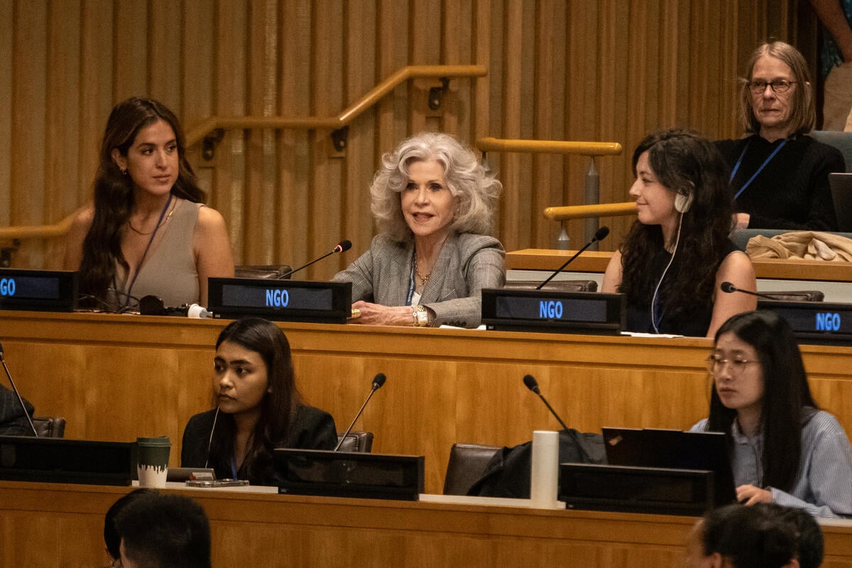 New York, United States, Actor and activist Jane Fonda joined Greenpeace’s delegation to the United Nations for a crucial Global Ocean Treaty meeting today. She delivered a rousing address to country delegates, thanking them for their work to protect the global oceans.