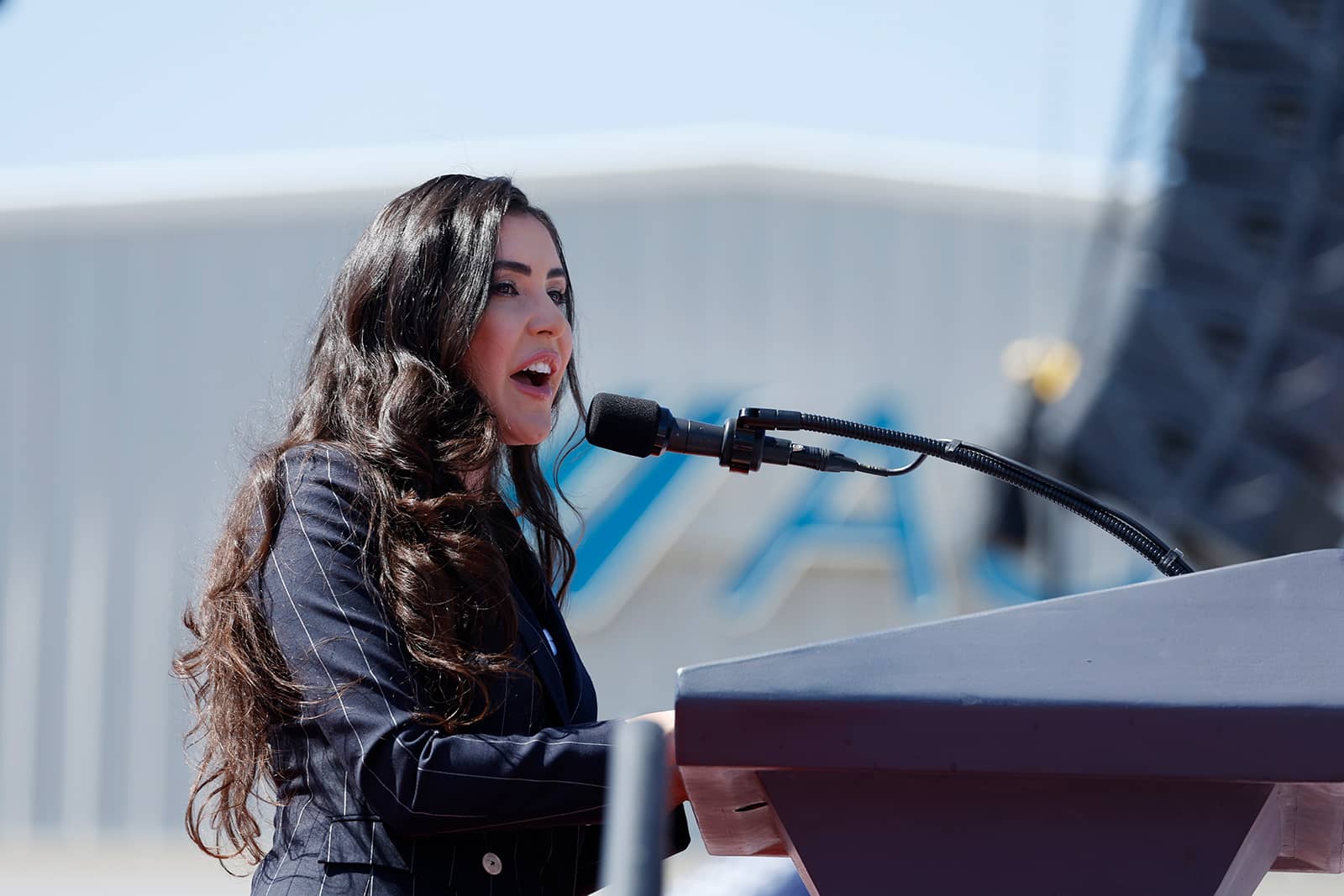Representative Anna Paulina Luna gives remarks during a rally for former president Donald Trump on September 21 in Wilmington, North Carolina.