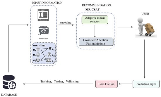 Figure 1, MR-CSAF builds on FREEDOM by adding an adaptive modality selector and a cross-self-attention fusion module. First, MR-CSAF’s adaptive modality selector dynamically adjusts the weights of different modalities to ensure that the features of each modality are learned in a balanced manner during training, even under data imbalance. MR-CSAF’s adaptive modality selector is able to dynamically adjust the attention between different product image and text modalities according to the current interaction context and user preferences. This dynamic adaptation mechanism enables MR-CSAF to adaptively optimize modal contributions in different scenarios, thus improving the accuracy and robustness of the recommendation system. The cross-self-attention fusion module propagates information between text and images, transferring information within each modality through the self-attention mechanism. Using this module, we can explicitly model the interactions between text, images, and interactions within modalities. These features are later propagated and aggregated across the user–item graph through a GNN. We performed experiments on three publicly available benchmark datasets. Our experimental results show that our model outperforms existing baseline approaches.