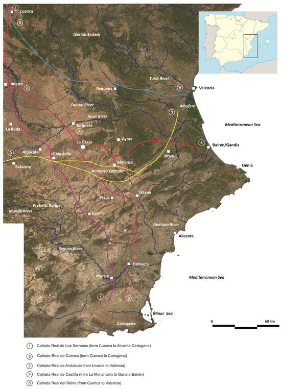 Figure 2). The eastern sector is an area bordered on its eastern flank by the southeastern foothills of the Iberian System and the northeastern reaches of the Prebetic Range, between which lies the Almansa Corridor. This traditional pathway followed the route of the Via