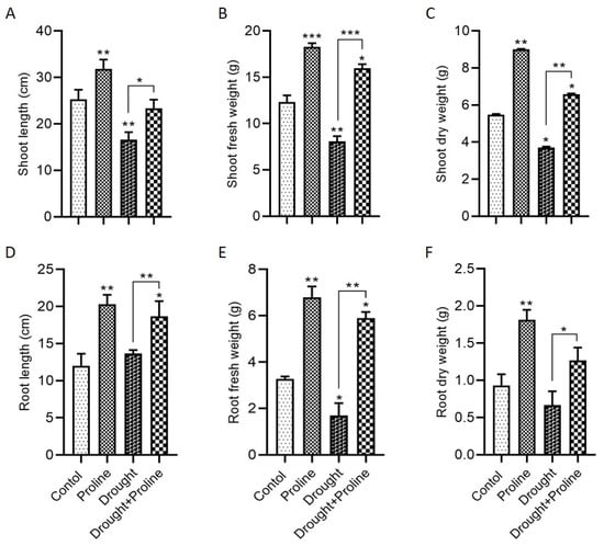 8]. Similar to drought stress, exogenous proline supplementation has been shown to enhance plant growth and biomass under salt stress in various species, such as