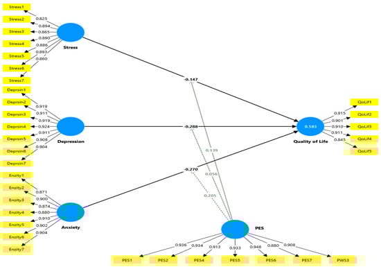 59] by showing that the PES moderates the adverse impacts of mental health disorders on QoL. The results indicated that higher emotional support weakens the detrimental impact of stress and anxiety, strengthening the theoretical assumption that emotional and social resources have a key role in psychological well-being.