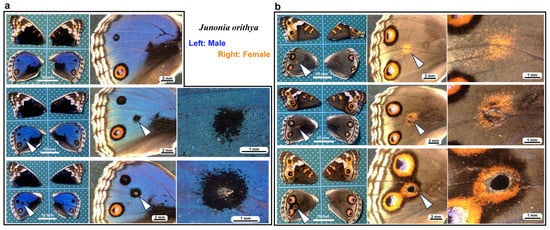 In the pupal wing epidermal (epithelial) tissues of butterflies, puncture damage is repaired quickly, and repaired adult wings can be observed after eclosion [47]. Intriguingly, repaired damage sites often accompany eyespot-like ectopic color patterns [47,48,49,50,51]. Calcium oscillations and propagating waves are induced at the damage site but are also observed spontaneously from the prospective eyespot focus (i.e., the eyespot organizer) [52]. Moreover, the prospective eyespot focus expresses many kinds of genes involved in wound healing and calcium signaling [53]. Hence, it is understandable that normal color pattern formation during development and ectopic color pattern formation after wound healing are mechanistically similar in butterflies. Ectopic color patterns and calcium signals are induced by puncture damage, not only in butterflies but also in fish [54], suggesting that butterfly and fish systems share a common mechanism of wound healing and color pattern development to some extent. Although the cellular and molecular mechanisms of color pattern development in butterfly wings have been studied intensively using several approaches, including comparative morphological approach [48,55,56,57,58,59,60,61,62,63,64,65,66,67,68,69,70,71], surgical and physical approach [72,73,74,75,76], physiological approach [77,78,79,80], bioimaging approach [81,82,83,84,85,86], and genetic and molecular biological approach [87,88,89,90,91,92,93,94,95,96,97,98,99,100,101,102,103,104,105,106,107], the wound-healing process itself has not been studied at the cellular level in butterflies.