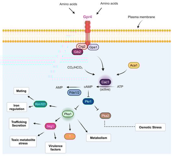 40], as well as carbonic anhydrase Can20, play crucial roles in controlling adenylyl cyclase (Cac1) and cAMP production in response to carbon dioxide, amino acids, and glucose [