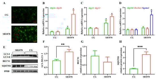 Sqstm1 gene to regulate its transcription level. The upregulation of SQSTM1 protein expression suggests enhanced interactions between SQSTM1 adapter proteins, ubiquitinated substrates, and LC3B protein on the isolation membrane, thereby increasing the efficiency of ubiquitinated substrate entry into autophagosomes and ultimately upregulating the level of selective autophagy (