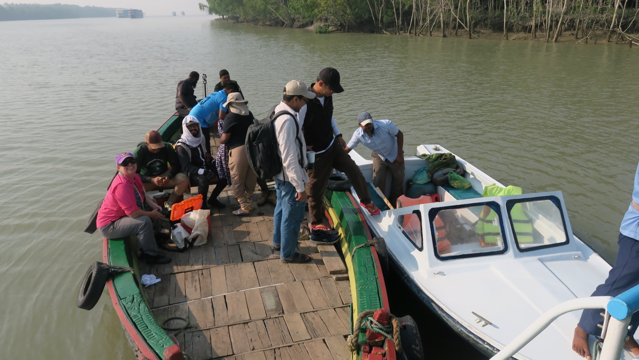 At 10 p.m., we headed back north and west to the Pusur River. Carol and her team are going to Polder 32 where they have 8 RSETs, four on the island and four in the adjacent Sundarbans, which will take multiple days to measure. My GNSS on Polder 32 is working fine, so there is no need for me to visit it. Instead, Sanju, Zohur and I will begin the last leg of our trip.
