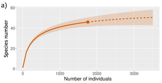 Figure 1a). The values of Chao 2 and Jackknife 1 suggest the potential presence of a maximum of 54 species for this plant community.