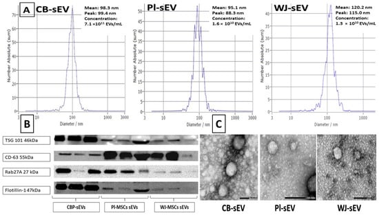 Nanoparticle tracking analysis (NTA) was carried out using the Zeta View (Particle Metrix, Meerbusch, Germany) following the manufacturer’s instructions. sEVs derived from CBP-, PL-, and WJ-MSCs were further diluted 100- to 1000-fold with PBS for the measurement of particle size and concentration [