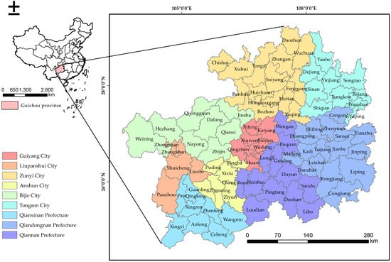 24]. Different kinds of methods significantly enrich our considerateness to the dynamics of CLE. However, few studies have combined all these methods to analyze CLE comprehensively and deeply. In addition, the current research on CLE is a multidisciplinary and comprehensive field that requires scientific methods and appropriate scales to assess its wide-ranging impacts and provide scientific support for urban planning and administration. Therefore, this study will comprehensively consider three ways to systematically analyze the spatial and temporal evolution characteristics of CLE in Guizhou Province from a long-term perspective from 1980 to 2020.