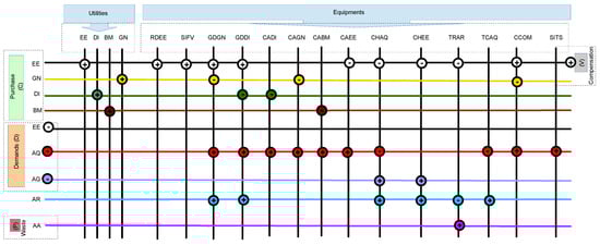 In Equation (4), S, P, E, C, D, and W represent Purchase, Production, Excess, Consumption, Demand, and Waste, respectively, for utility n in month m, day r, and time h.