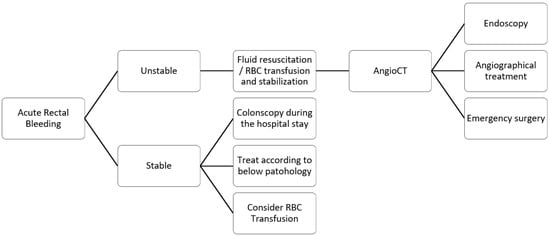 15], followed by anorectal disease such as hemorrhoidal bleeding. Less common causes are colorectal cancer, colitis, radiation proctitis, and iatrogenic bleeding. Different risk factors have been identified, such as advanced age [