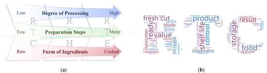 Due to the nature of RTC foods, most of them need to be initially washed and sanitized to remove debris and microbial load, then pre-cooled for the cold chain [38], as shown in Figure 3. They also need to be treated with antimicrobials along with the washing or by adding antimicrobial components inside the package, i.e., antimicrobial interventions (essential oil [39], organic acid [40], chitosan [41], etc.), in order to maximize the shelf life of the unsterilized ingredients; in addition, pathogenic contamination needs to be prevented.